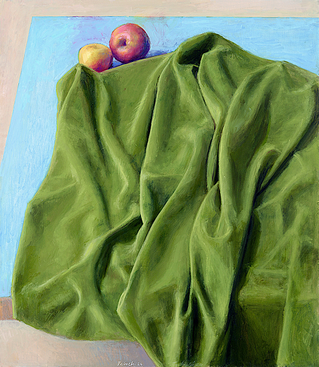 Título: Manto verde y manzanas