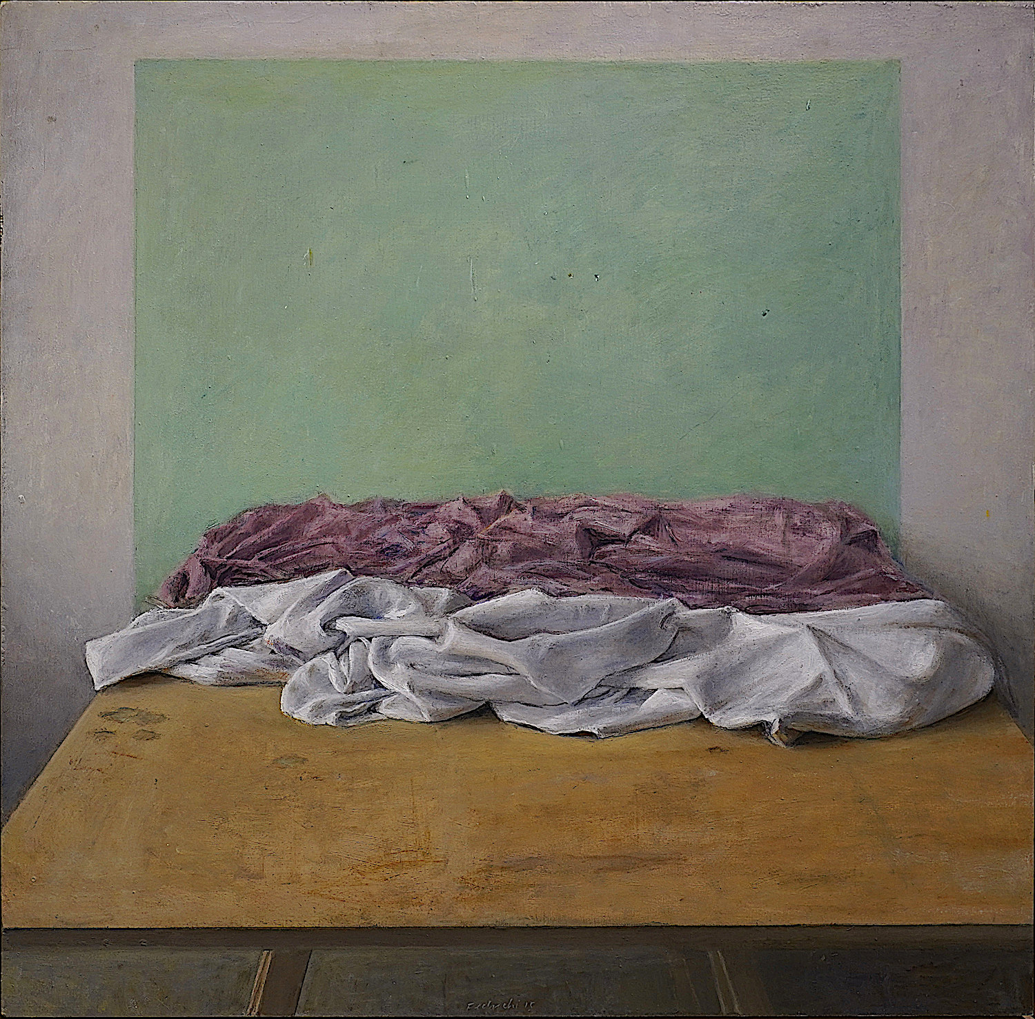 Título: Mesa con telas en el estudio