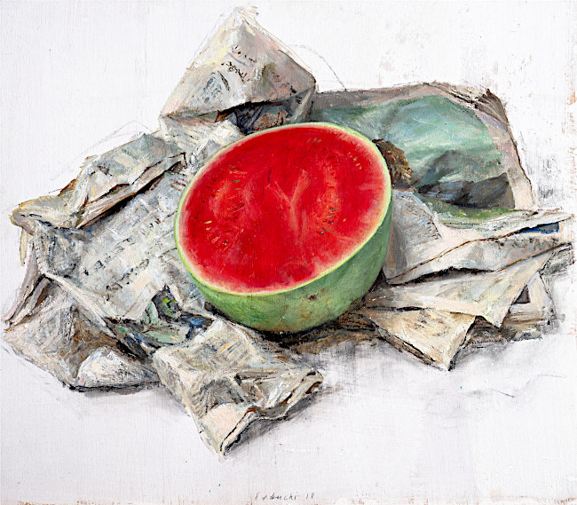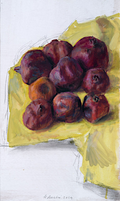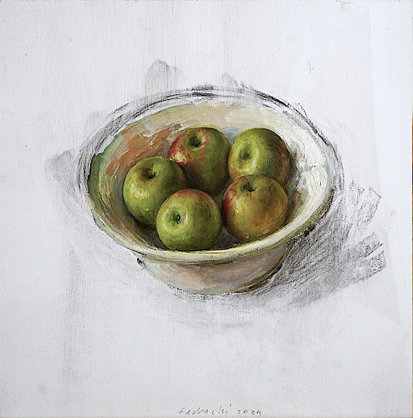 La obra de Leticia nace cargada de insinuación expresiva. Empezando por el color y sus matices, “cada pincelada implica una decisión y un riesgo”, la artista compone un universo de volúmenes y formas con los que, lejos de representar lo simplemente cotidiano, extrae la materia pictórica subyacente a la realidad. La técnica de Feduchi combina frescura y precisión, su estética pictórica se fundamenta en el color a partir de una cuidada selección de sujetos, original y a menudo impactante. Destaca el tratamiento de las telas y cerámicas, superficies artificiales que aparecen, sin rivalizar, junto a otras naturales, frutas, flores, donde la relación entre los elementos es la guía compositiva, sin olvidar la ubicación de los elementos en los límites bidimensionales, a menudo atrevida y original.